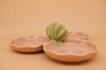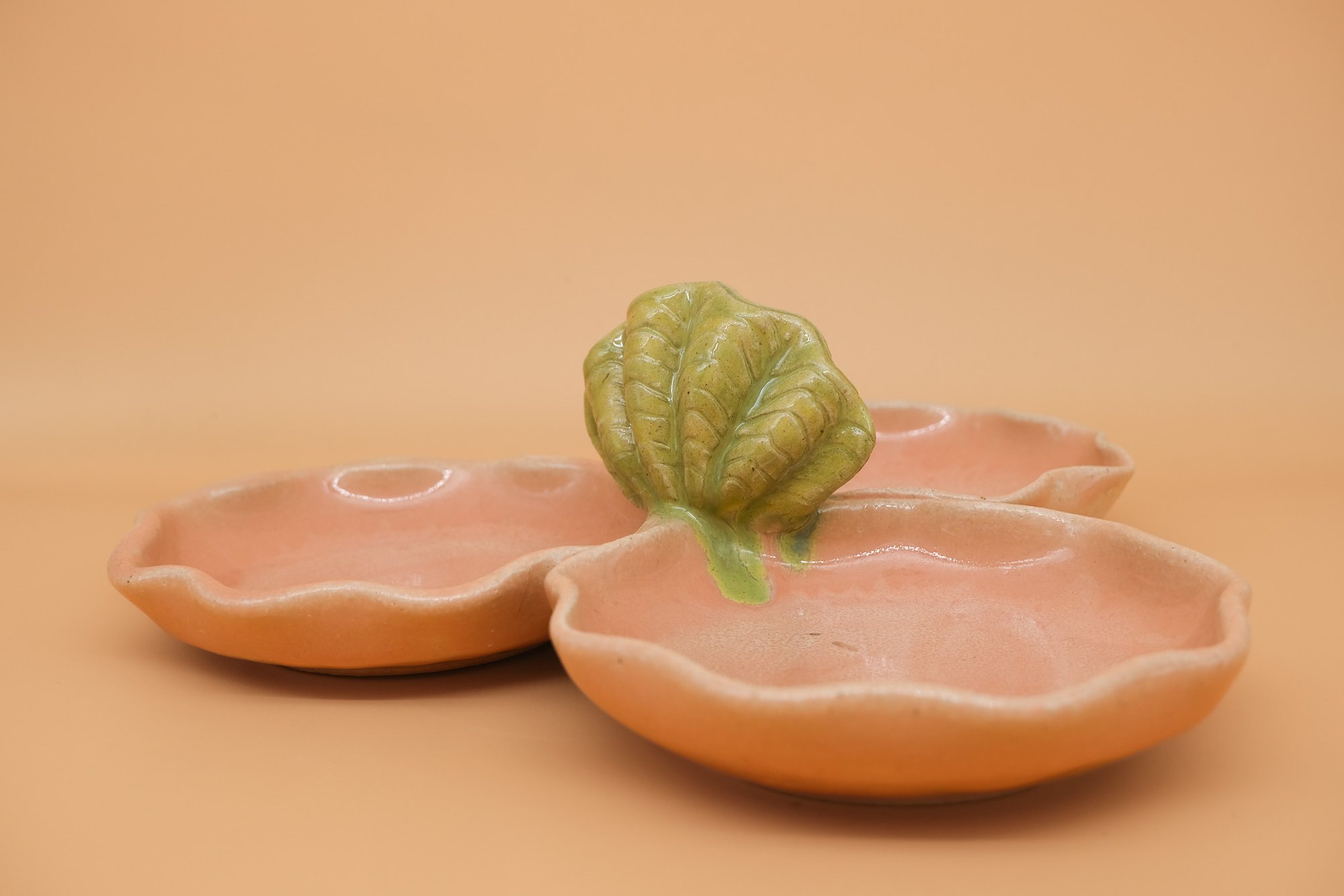 Wheel-thrown and assembled, ceramic tray with a hand-built clam handle and glazed interior. Great for olives, nuts, candy, or condiments. Dishwasher safe and made with durable stoneware clay. Approx. 10.5" × 4".