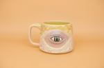 Handmade ceramic mug. Holds 8oz of liquid. Dishwasher safe!